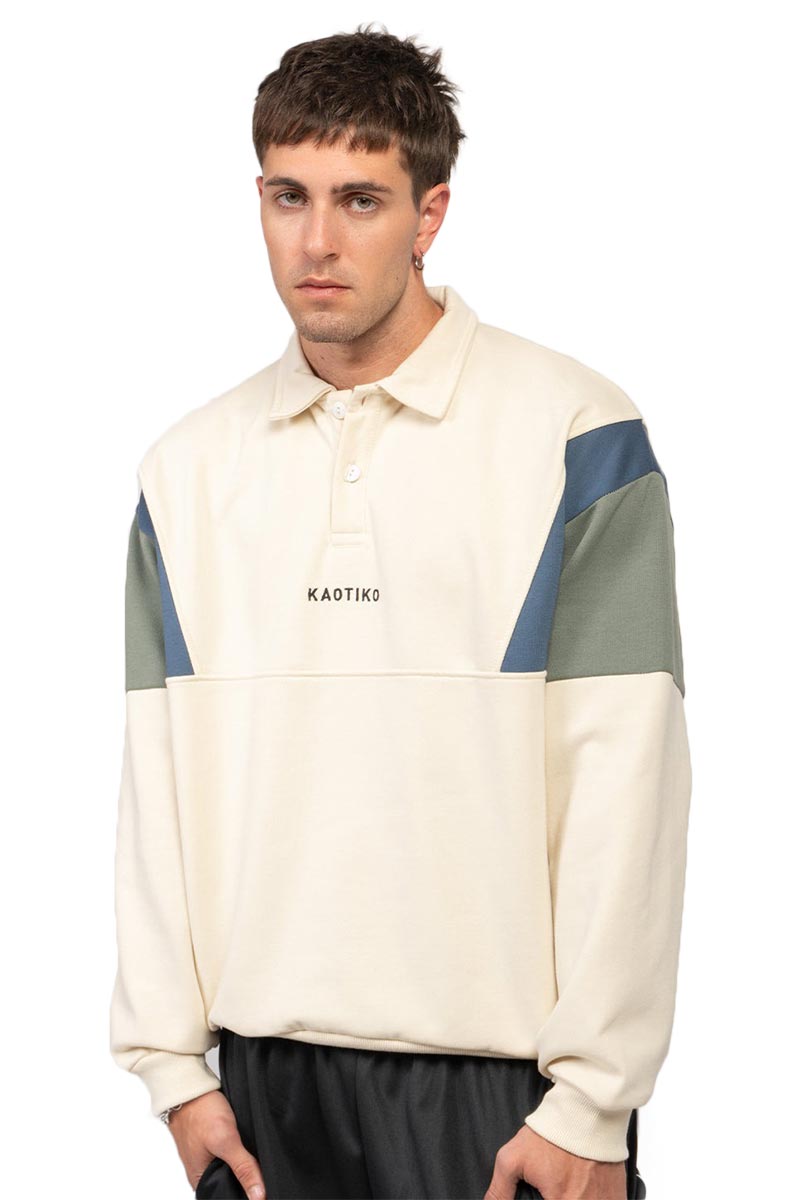 Kaotiko Harry Polo Sweatshirt Bone/Prussian/Old Green