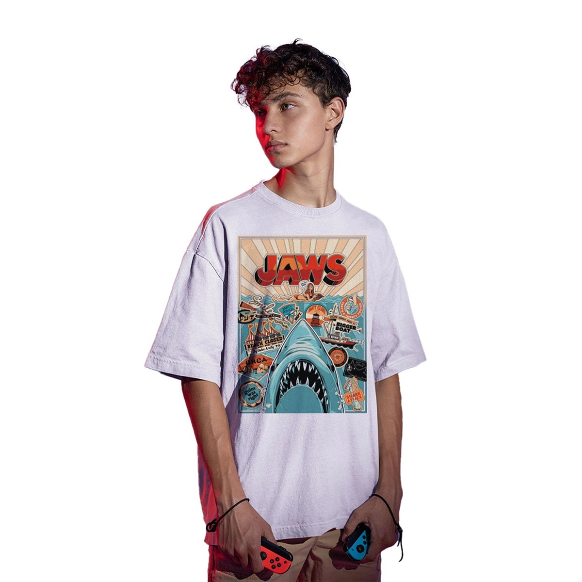 Cotton Division Jaws Arist Poster Oversize T-shirt White