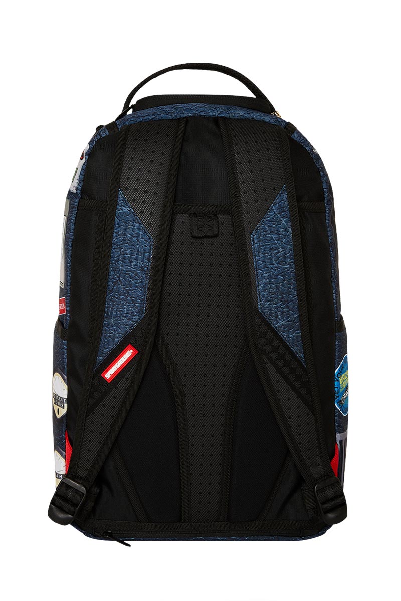 Sprayground backpack with multiple storage compartments, adjustable straps and ergonomic mesh back padding