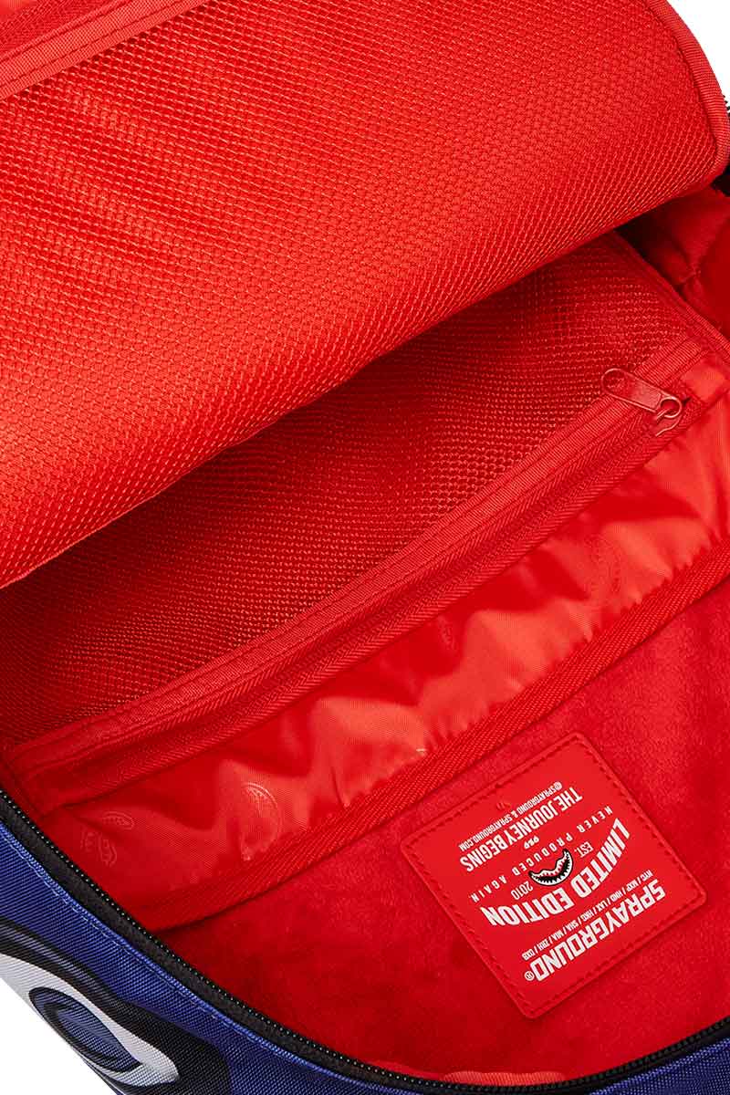 Sprayground backpack with multiple storage compartments, adjustable straps and ergonomic mesh back padding