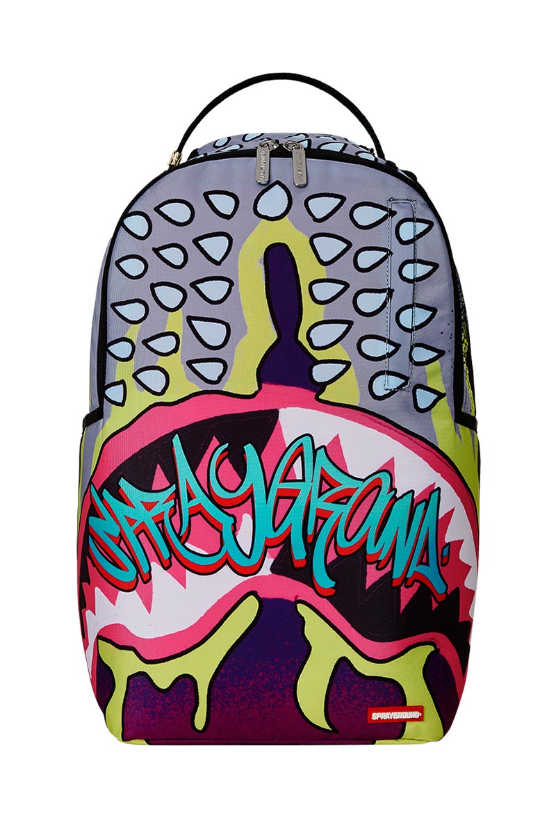 Sprayground backpack with multiple storage compartments, adjustable straps and ergonomic mesh back padding