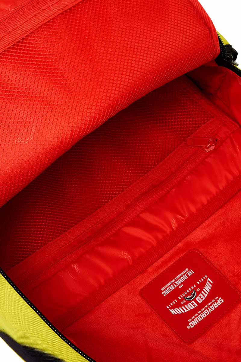 Sprayground backpack with multiple storage compartments, adjustable straps and ergonomic mesh back padding