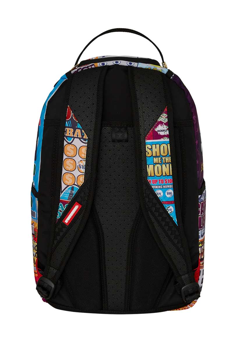 Sprayground backpack with multiple storage compartments, adjustable straps and ergonomic mesh back padding