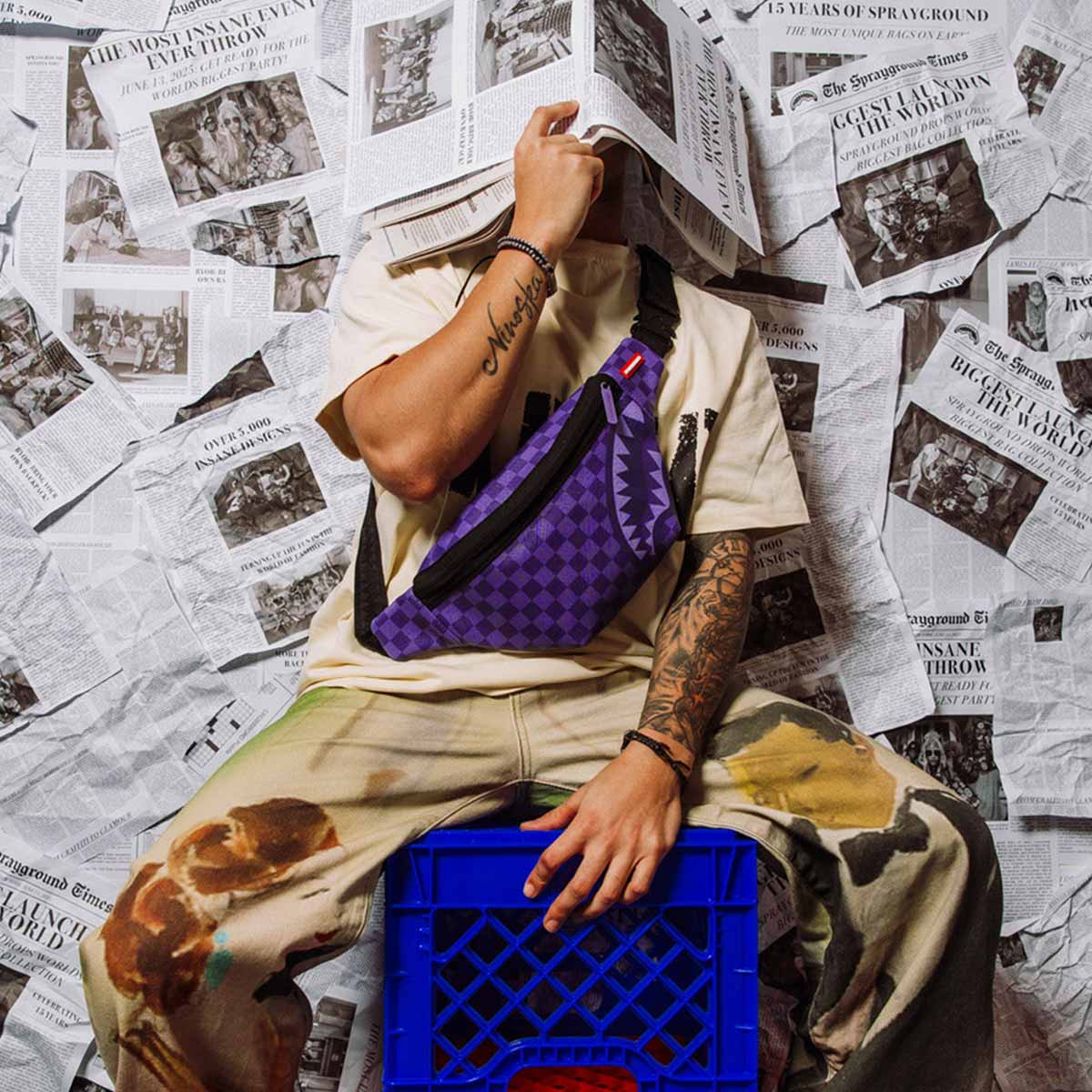 Sprayground cross body bag, can be worn over the shoulder or around the waist.
